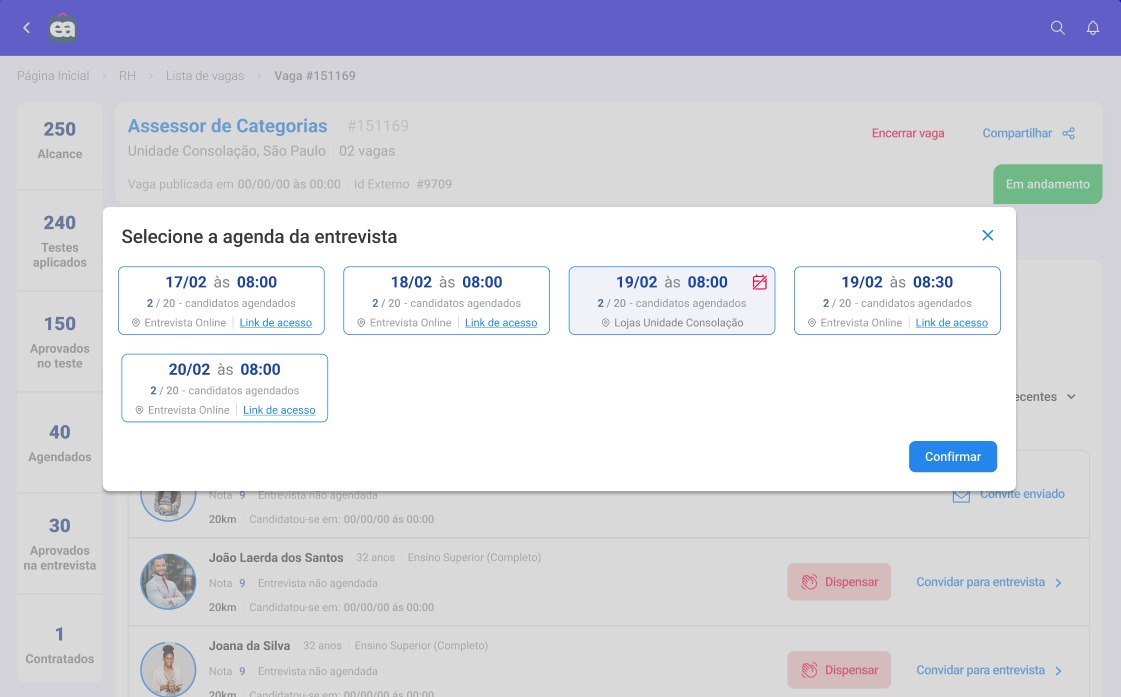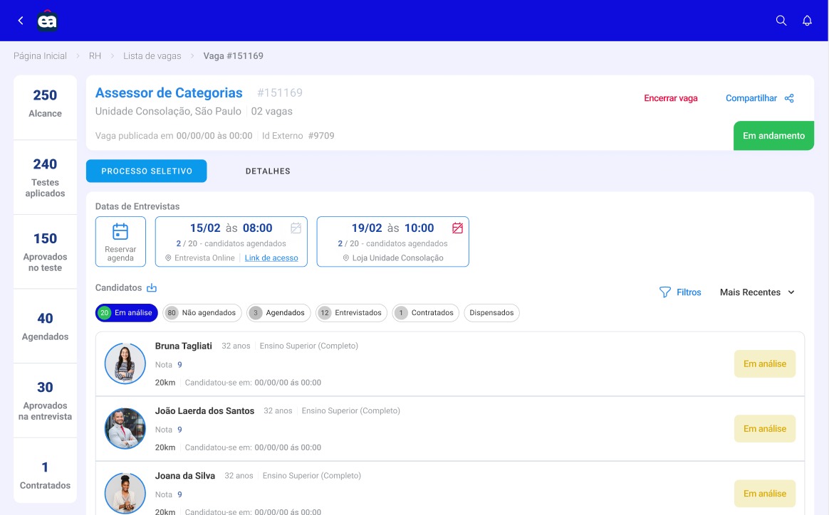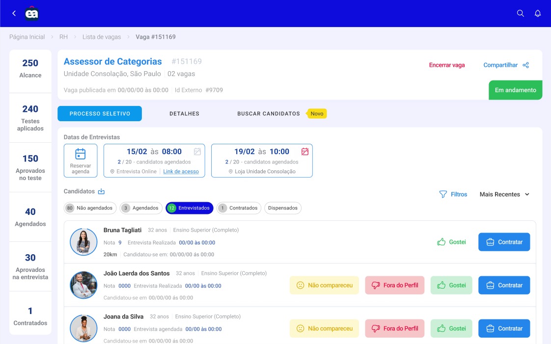 Perfil 100% alinhado à cultura da empresa e perfis validados